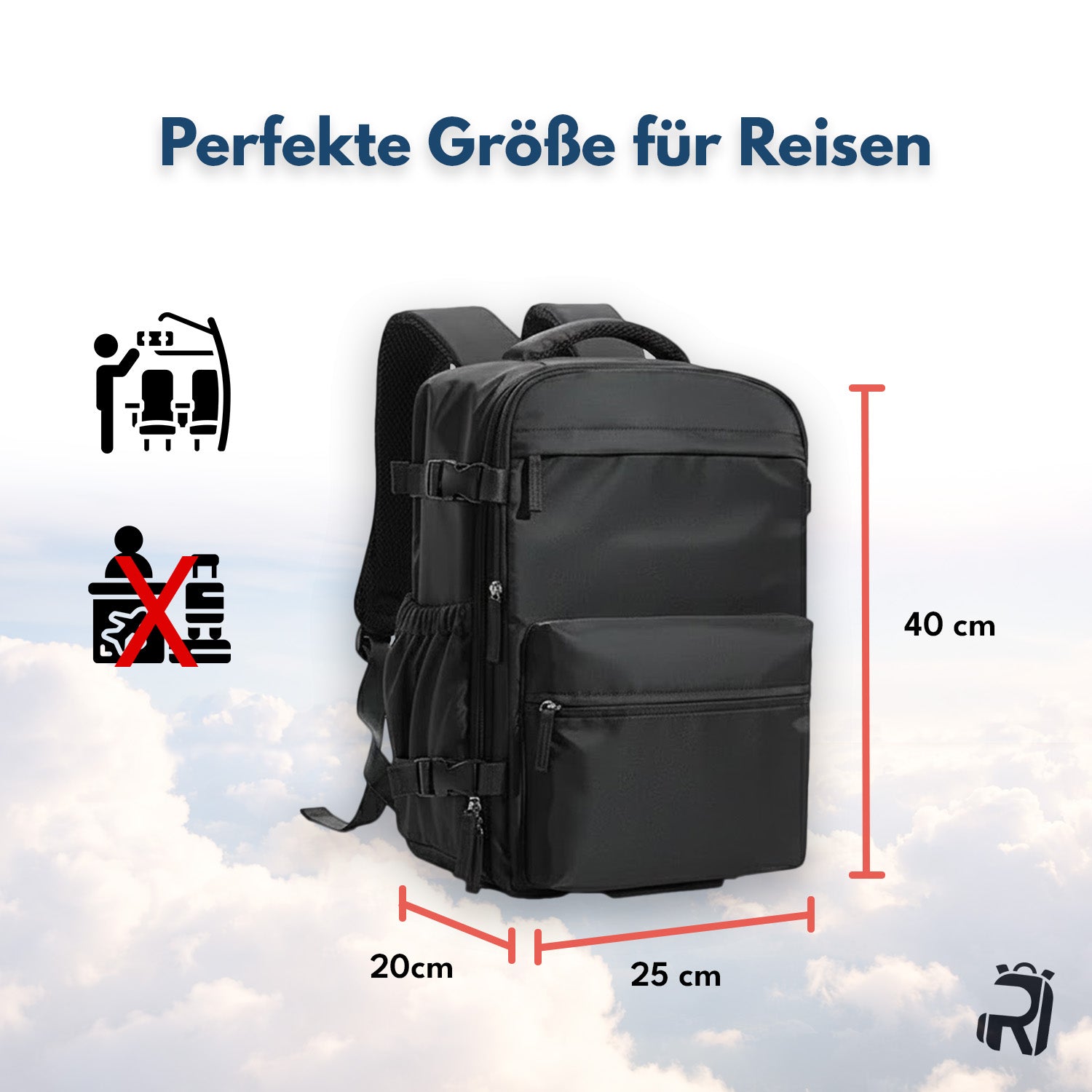 Ja, unser Rucksack wurde gezielt so konzipiert, dass er den gängigen Handgepäck-Maßen (40x25x20) der meisten Airlines entspricht.