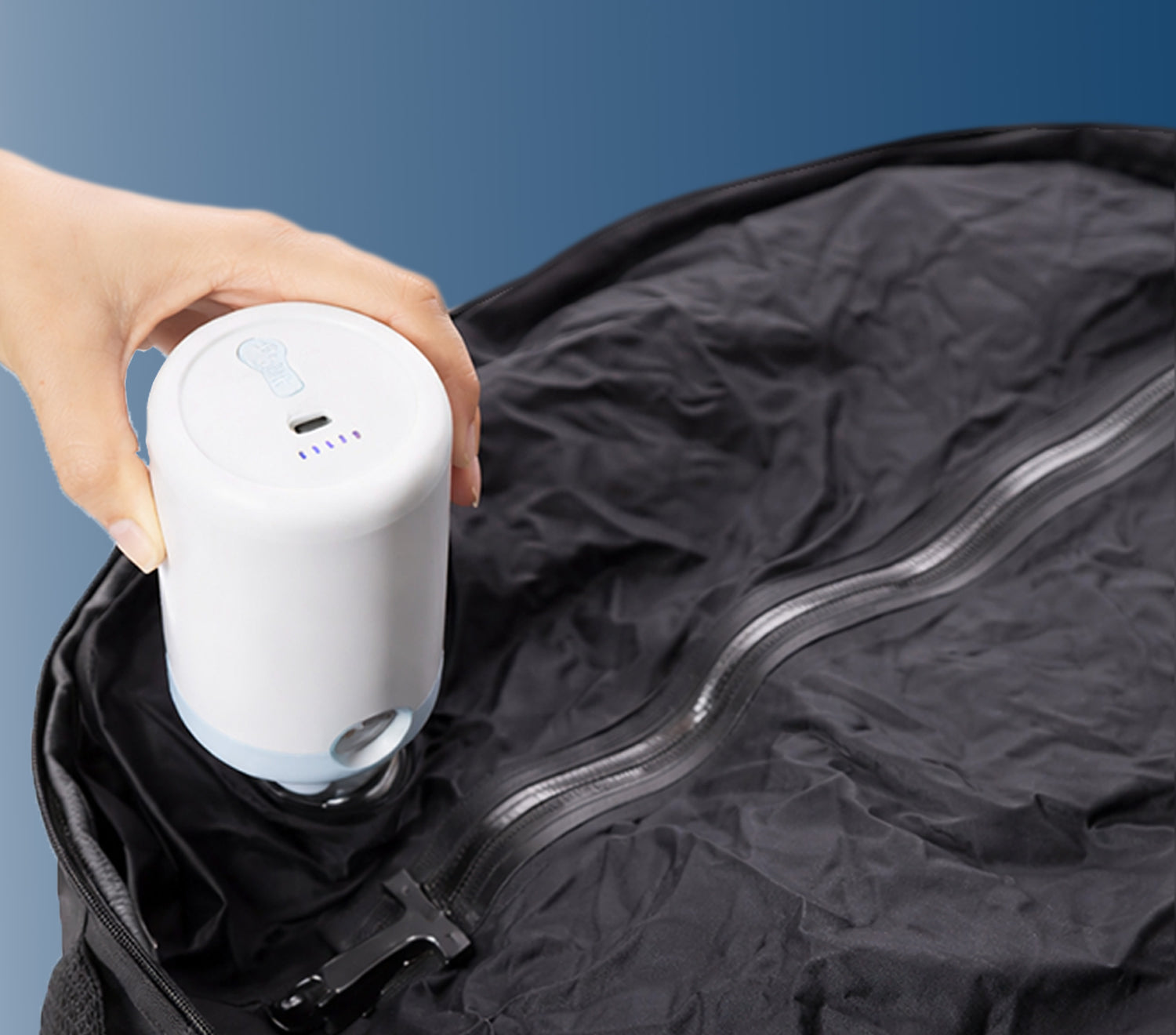 Die elektrische Pumpe schafft auf Knopfdruck mehr Platz im Rucksack.