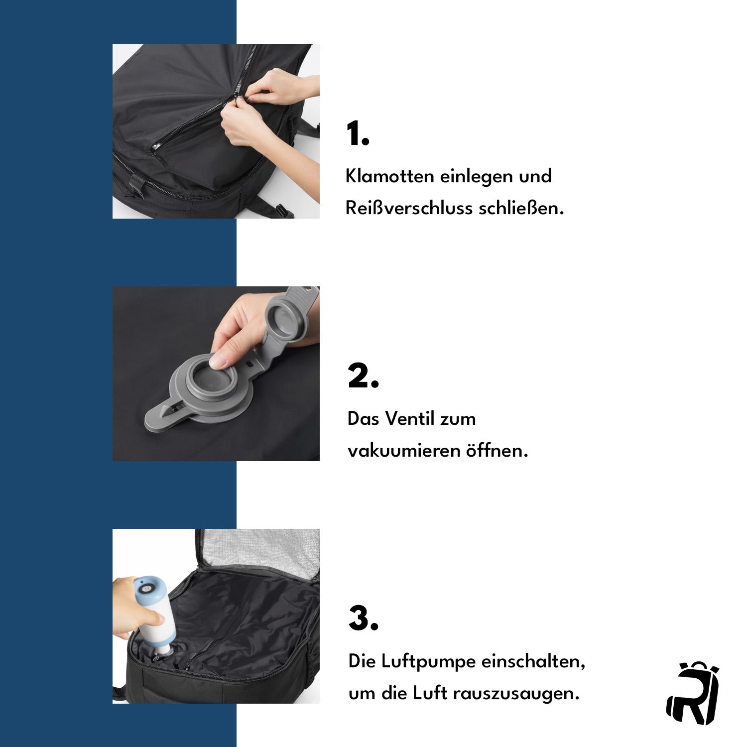 Mit dem VakuMax nutzt du jeden Zentimeter optimal, bleibst Handgepäck-konform und reist organisiert dank intelligenter Kompression und durchdachter Fächer. Kein Pack-Stress, kein Warten am Gepäckband und keine Zusatzgebühren – einfach schneller, smarter reisen.